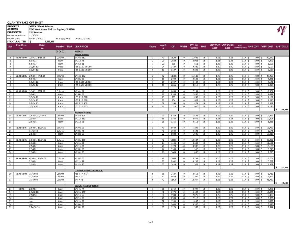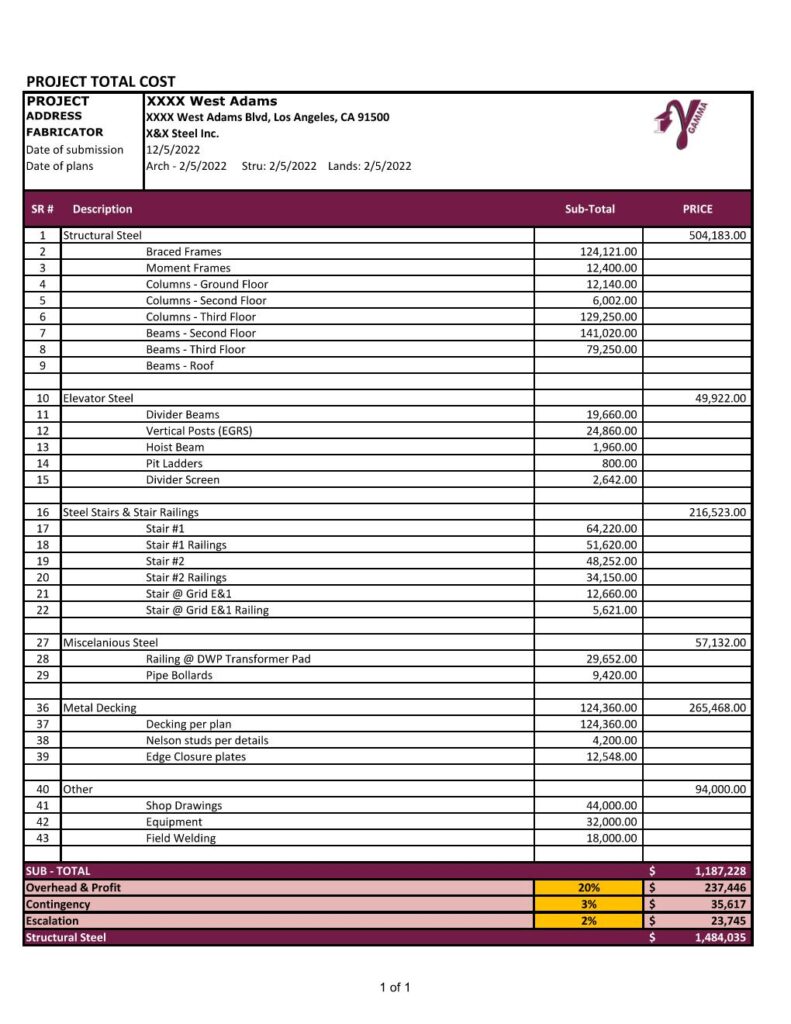 Gamma’s team of skilled & experienced estimators excel in creating accurate Quantity Takeoff sheets.